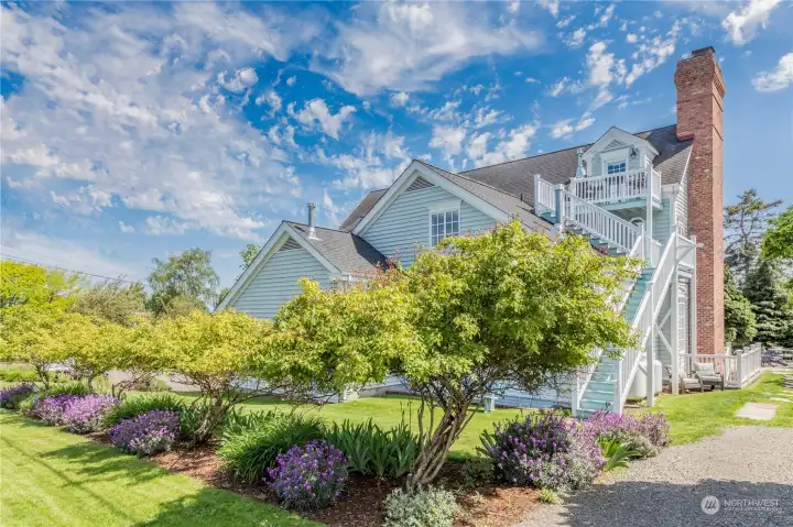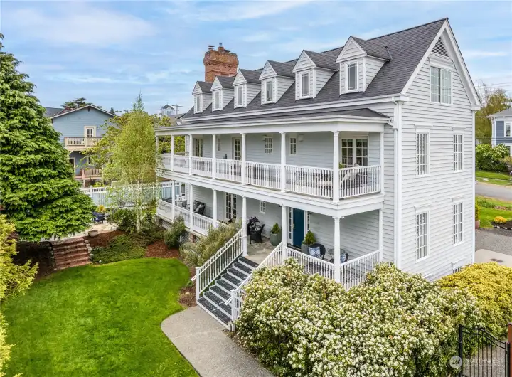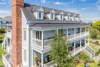 Luxurious Cape Cod home in historic uptown Port Townsend, currently is a profitable B&B. Run a charming business, or transform it into a spacious private residence. Located on a sunny hillside 2 blocks above Port Townsend’s historic district the residence offers incredible shipping lane views w/ the rugged Cascade Mts. from Baker to Rainier. 10 bedrooms, each featuring an en-suite & a distinctive motif, 5 are presently utilized for the B&B. Main level of the home includes a spacious kitchen that opens to a large dining room, sitting area and library. Throughout the home you'll discover numerous intimate spaces, perfect for relaxation. Enjoy a variety of private verandas, a sweeping balcony, & a patio nestled amidst manicured garden beds.