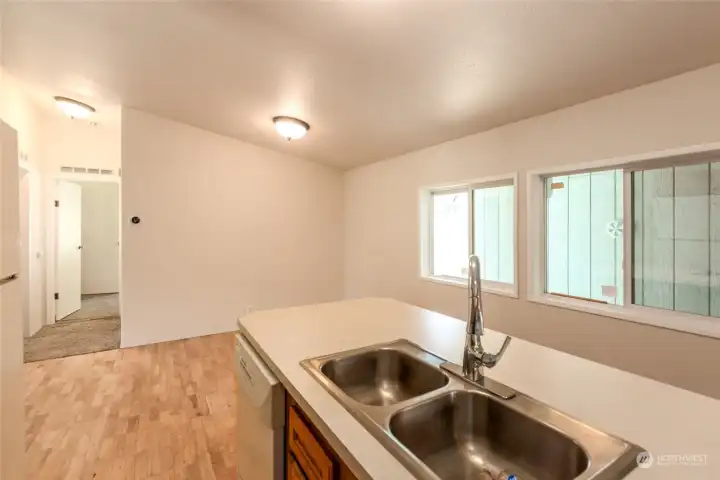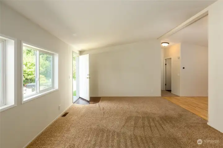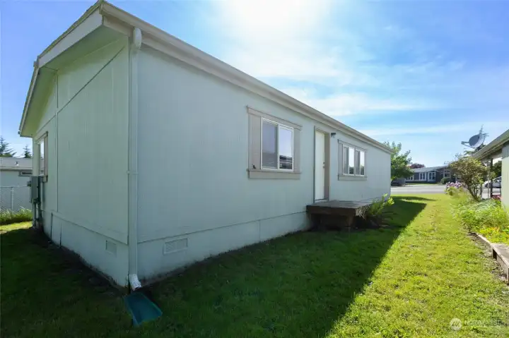 Welcome to The Oaks! Experience the serenity of living in this well-maintained manufactured home community, with views of the valley, False Bay, and the Olympic Mountains. This charming home features just under 1300 sqft of space, with three bedrooms and 1.75 bathrooms. Enjoy a thoughtful layout with a split bedroom plan, vaulted ceilings, and walk-in closets. Freshly painted & equipped with a large utility room, Nest thermostat, smart switches, and additional storage sheds, this home offers both comfort and convenience. Nestled against the woods for ultimate privacy, the property includes raised garden beds and a mature apple tree. Residents also benefit from extra storage options perfect for boats or RVs.