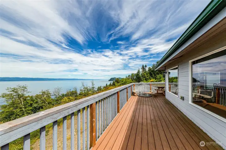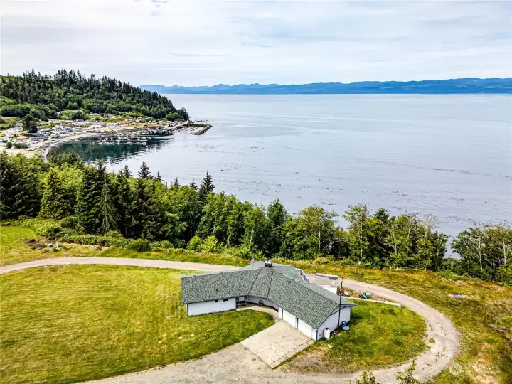 Incredible property that you won’t find anywhere else! Breathtaking views of Clallam Bay, the Strait of Juan de Fuca, and the mountains across the water. This amazing home features large windows and a huge wrap-around deck, perfect for taking in the stunning scenery from your living room. The home includes two nice bedrooms, two full baths, and a half bath by the utility room, which leads to a spacious, attached two-car garage. The huge daylight basement with a wood fireplace has tremendous potential to be remodeled into something really special. The real treasure is the almost acre-and-a-half lot—easy to access but hard to find—with ample room for additional outbuildings or boat parking. This place is truly one of a kind!