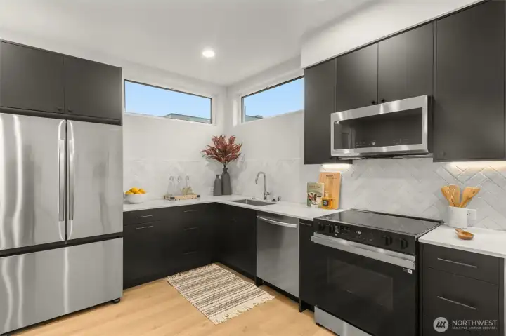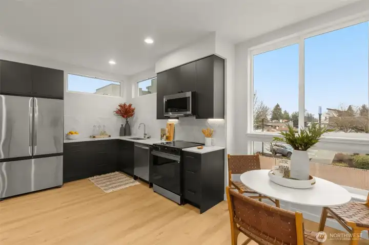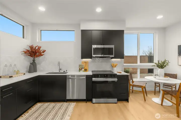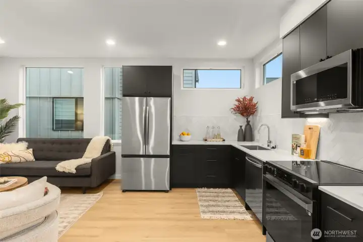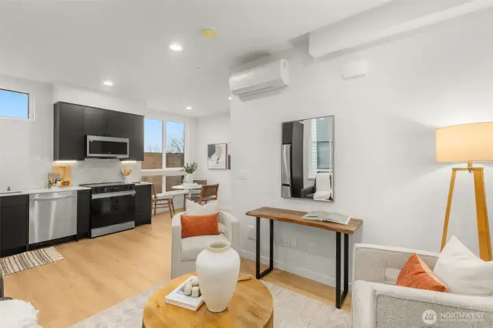 FANTASTIC NEW PRICE - LAST CALL SALE! A thoughtfully designed 2-bedroom townhome in Whittier Heights that balances modern comfort with flexible outdoor living. Tucked within a well-designed community with courtyard and sidewalk access, this home offers a spacious garden-level patio, ideal for morning coffee, container gardening, or casual entertaining. Inside, enjoy 1,243 sq ft of efficient, light-filled living. The main level features a sleek chef’s kitchen with contemporary finishes, stainless appliances, and an open great room that flows seamlessly for everyday living and hosting alike. Mini-split heating and cooling provide year-round comfort and energy efficiency. The second level includes a full bedroom, stylish bath, and convenient laundry, while the top floor is reserved for the primary suite, complete with generous storage and direct access to an expansive rooftop deck. Designed as an outdoor retreat, the rooftop offers space for lounging, dining, and taking in open neighborhood views—perfect for relaxing evenings or weekend gatherings. Additional highlights include EV-capable parking, modern systems throughout, and smart use of space at every level. All just minutes from Ballard Avenue’s boutiques, cafés, restaurants, breweries, and the iconic Sunday Farmers Market—this is urban living at its finest!