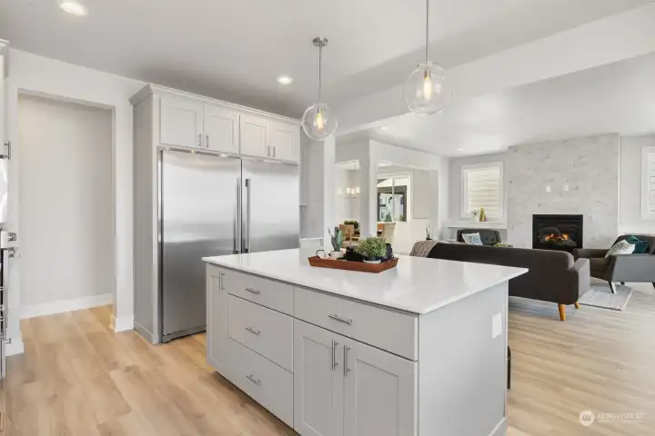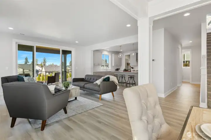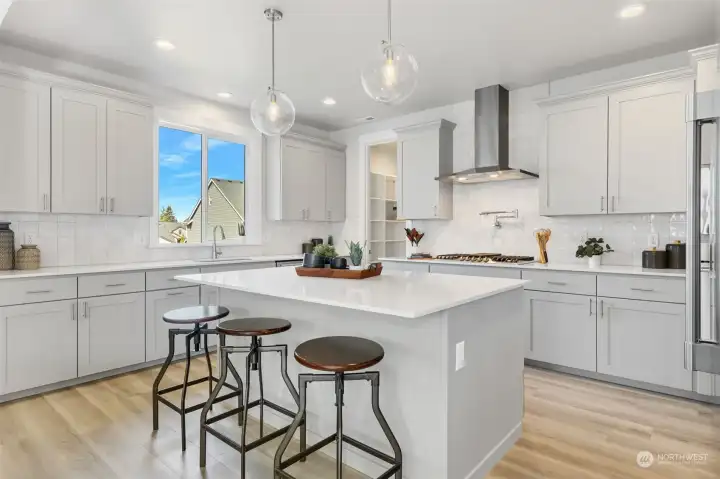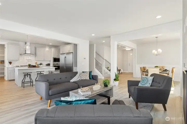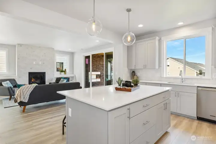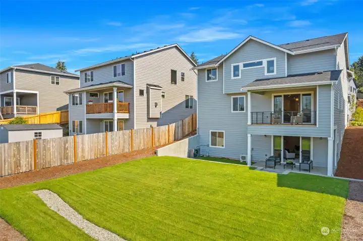 FINAL OPPORTUNITY!! This exquisite 4,080sf home designed for multi-gen living & effortless elegance built by Azure NW. 5-bed, 3.5-bath masterpiece offers a gourmet kitchen w/top-tier SS appliances & spacious island - perfect for entertaining! Open-concept living area boasts high ceilings & abundant of natural light. Glass slider to private back deck w/open flame liner gas fireplace overlooking the professionally landscaped & fully fenced backyard. Retreat to the primary w/ spa-like bath, free-standing tub & walk-in closet. 3 add'l bedroom up w/Versatile spaces offering separate living downstairs w/kitchenette, full bath, living room & bedroom. Located in a sought-after community. No HOA & centrally located to shopping & schools.