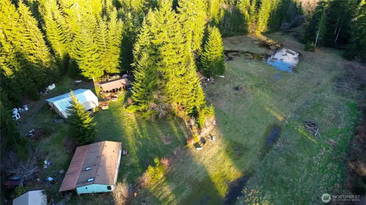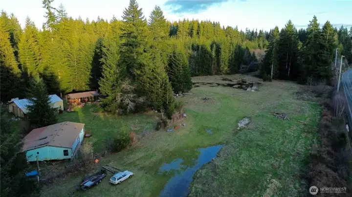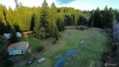 Established Utilities! Incredible opportunity for a secluded 16 acres of property with harvestable timber, existing utilities, and functional outbuildings. Huge shop with car port; inside there is a loft and a bathroom with water supply. Enjoy a second outbuilding with wood stove and additional covered storage space. Most of the property is level and cleared; perfect for horses and/or livestock. There is a creek nearby with seasonal salmon runs and even foraging opportunities with chanterelles growing under the canopy! Utilities established and ready to be built upon with total privacy. Property is surrounded by timber property and likely will never be developed. Buyer to verify all. Existing home not habitable. Make an offer!