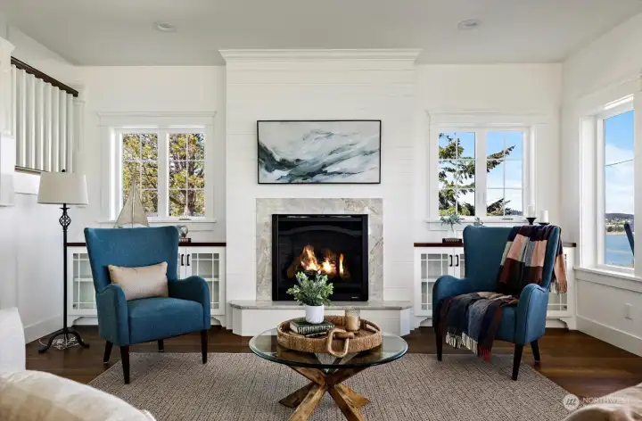 South facing sunny NEW CONSTRUCTION exquisite water view home! Directly faces Oak harbor marina & when clear see full & glorious Mt. Baker. Step thru hand-crafted, mahogany doors into a bright interiors for main-floor living. The solid wood finished carpentry, built-ins at every turn & custom cabinetry alone is stunning. Every thoughtful detail made with excellence.