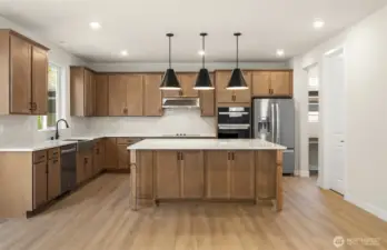 The Ellensburg plan offers 5 spacious bdrms, 4 baths, game room & 2 car garage. Main floor bdrm w/ensuite - complete w/walk-in shower! Luxurious open kitchen w/expansive island & walk-in pantry. Gathering room offers plenty of space to relax & features cozy modern fireplace. Sunny patio off Cafe, oversized primary suite boasts walk in closet, free-standing soaker tub, large shower & dual vanities. Buyer must register their broker on the first visit by completing a Guest Registration Card.