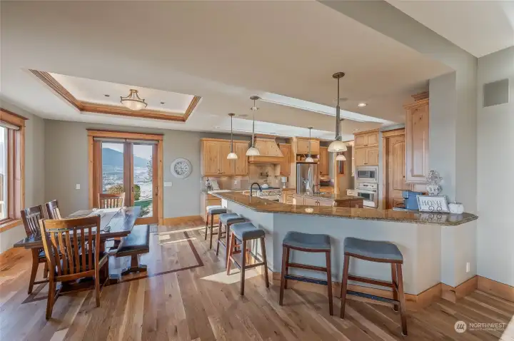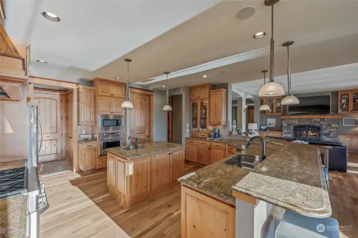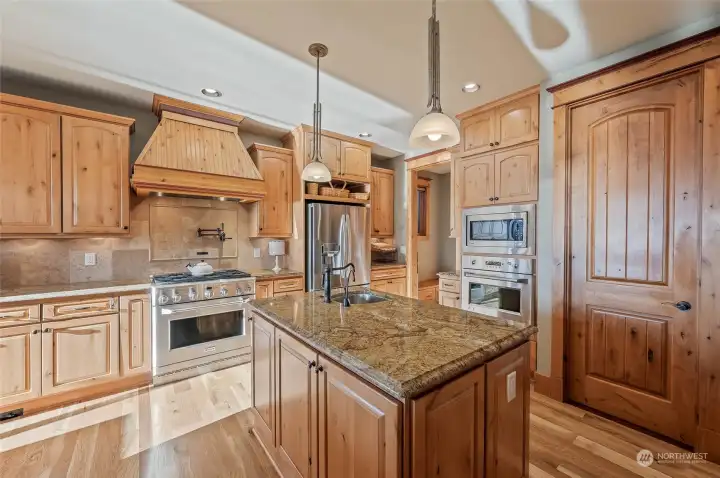 Pamper yourself with resort style living. 5024 sqft home on 9.57 acre offers privacy & tranquility. Great room floor plan, gorgeous hardwood floors, custom stonework, 8 ft solid wood doors. Dream kitchen features granite counters, dual fuel 6 burner range & oven & wall oven, walk in pantry. Theater room and lower level rec room with built in bar area & wine room. Disappearing edge pool and pool house with 1/2 bath, sauna room & outdoor shower. Outdoor kitchen with fireplace. 2880 sqft shop with RV storage, 2 horse stalls & fenced pasture. Zoning allows for auxiliary dwelling, fruit & nut trees, vineyard, storage structures, nursery & greenhouse, riding stables & horse boarding. See supplements for full list. Den can serve as 4th bedroom.