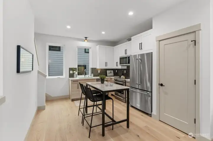 3.75% Rate w/ Preferred Lender. Maple Leaf new construction built by respected local builder LinMak Development. Home 1255 is a well executed 3-story home with 2BR, 1.75BA, rooftop deck with views of Cascade Mountains, and 1-car dedicated EV ready parking. LinMak completes a few select projects each year, each offering custom cabinets, beautiful wide plank engineered hardwood flooring, and quartz slab countertops. Ground floor includes guest BR/BA and large storage room. Open floorplan for kitchen, living, dining located on 2nd floor. Primary suite and rooftop deck on upper levels. Great location with easy access to amenities of Maple Leaf, 0.7 mile walk to Northgate Station, and easy access to I-5. Inquire-preferred lender. A must see!!