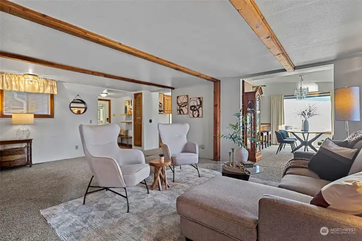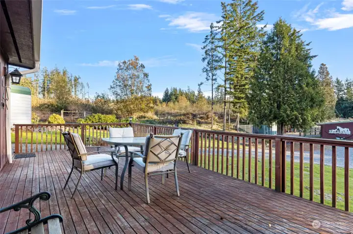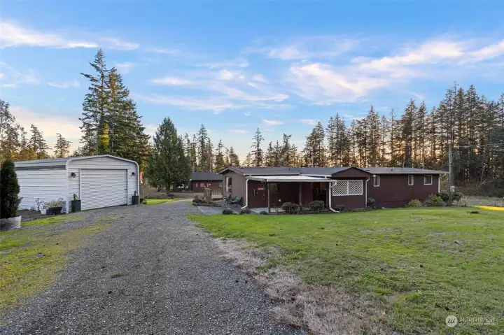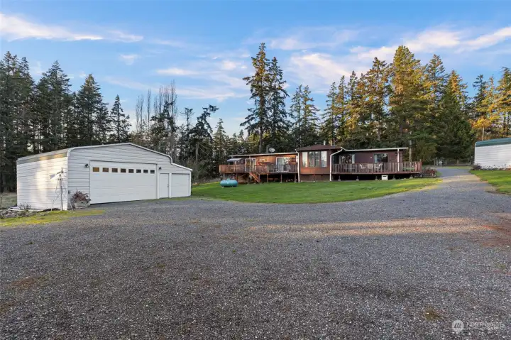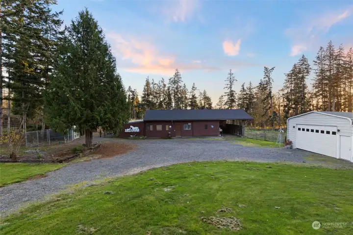 Escape to a serene, equestrian retreat on nearly 5 fully-fenced acres just outside of Oak Harbor. This beautiful 1,932 sq ft home offers 2 bedrooms, 1.75 baths, an open floor plan filled with natural light, and a cozy propane stove. Enjoy a spacious kitchen with updated appliances, ample cabinets, and storage. Step outside to relax on the spacious deck, patio, or attached sunroom, all with stunning views of the landscape. Equine-ready with 4 padded horse stalls, a tack room, barn, and fenced pasture, plus two garages, a workshop with 240V power, and workbenches. Enjoy tranquil ponds, a stream, and so much more—experience this enchanting property for yourself!