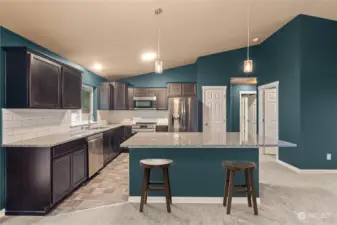 Experience coastal living in this brand new 1,940 sq. ft. rambler! Featuring 4 bedrooms and 2 full baths, this spacious home welcomes you with an open floor plan, vaulted ceilings, and a skylight bay that fills the space with natural light. The kitchen boasts dark-stained cabinets, granite countertops, and a large island perfect for gatherings. The walk-in pantry can optionally be converted to a half-bath/powder room. The primary suite offers a walk-in closet, separate shower and tub, and dual sinks. On the opposite side, find three additional bedrooms, a second full bath, utility room, and a 2-car garage. All new appliances. Located just a block from Duck Lake, enjoy serene walks and a true coastal lifestyle!