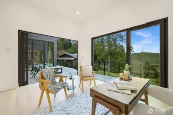 This recently completed Rubicon Construction masterpiece intermingles elegance and modern design at its core. The open layout is bathed in natural light and seamlessly flows between the well designed floorpan including all amenities on the 1st flr for main level living. A chefs kitchen with expansive island and bar seating is ideal for entertainers. The 4 season room can be completely opened or closed to the elements for year around use. A lower level kitchenette, perfect for guests or long term residency. Step onto the property and take in breathtaking views of the Salish Sea & the San Juan Islands the perfect backdrop for everyday living. This property includes eligibility for membership to the sought after Chuckanut Beaches Association.