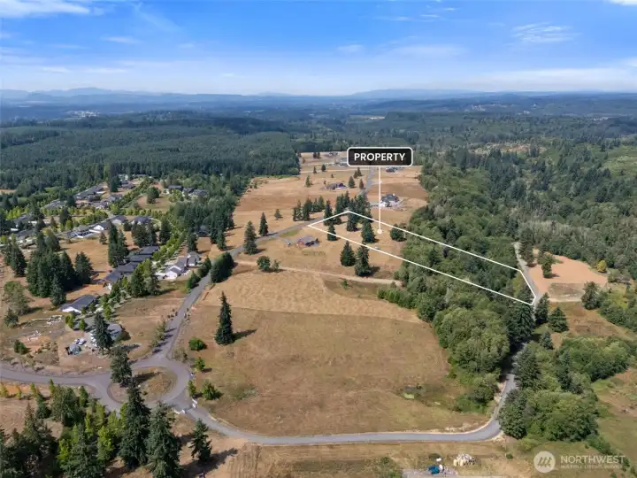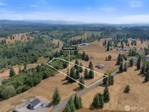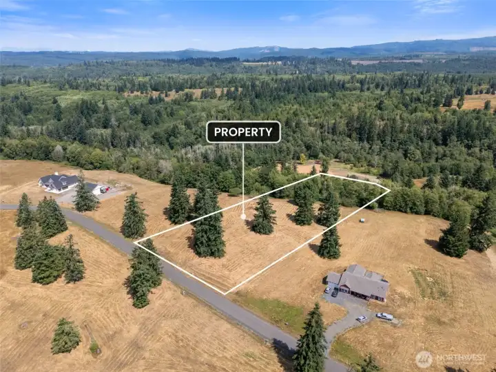 Nestled on 5 serene acres of lush evergreens with breathtaking views of Mount Rainier and the surrounding foothills. Embrace the tranquility of nature with space to garden, entertain, and enjoy local wildlife. A building permit is approved for a 2,173 sq. ft. modern home featuring 3 bedrooms, 2 baths, and a 2-car garage—all prior to new state energy codes. The building site, driveway, and septic are already staked out, with septic design included and permitted (installation bid available). Enjoy the convenience of a paved private road, secure entry gate, and fiber internet available. Community water hookup available for $4,000. Just a short commute to Centralia and Chehalis, this property is ideally located between Seattle and Portland.