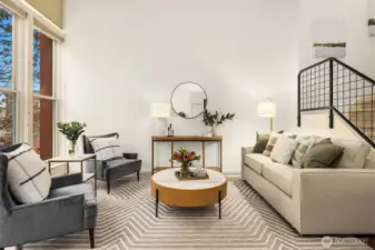 This thoughtfully designed Belltown condo combines modern convenience w/ urban charm.Steps from Pike Place Market,the Waterfront & other amenities.Featuring 2 bedrooms, each w/ walk-in closets & full bath,this refined rustic home boasts exposed brick & striking floor-to-ceiling windows spanning 2 levels.Dramatic windows flood the space w/ natural light,enhancing it's open feel while framing stunning views of Puget Sound.Highlights include a hideaway office, laundry room, courtyard, rooftop deck & sleek kitchen w/ pantry. The original 1908 exterior seamlessly integrates into the rebuilt interior, adding a chic historical touch. Short term rentals and pets allowed. No rental cap. Indoor parking space and storage.