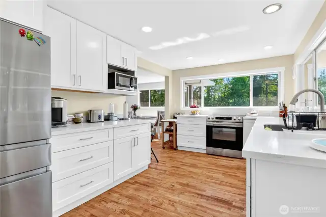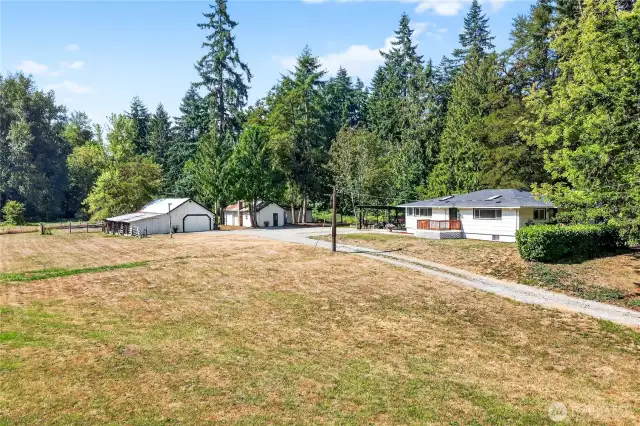 Incredible New Price! $100,000 below original list! Freshly updated & gorgeous air conditioned home situated on over 5 acres w/barn & shop. Designed to allow for multi-generational living or separate living areas on each floor, this home offers 2 kitchens, 2 living/dining rooms, 2 laundry hookups & 2 power meters. With 3 bedrooms, 2 bonus rooms & 2 bathrooms there is room for everyone. Updates include new kitchens w/quartz counters/shaker cabinets, floors, roof, heat pump/furnace, wiring, plumbing & more. Giant barn, shop/garage, carport to entertain or park your vehicles, fenced & more. Priced to sell quickly. Buyer & buyer's agent to verify all information to own satisfaction