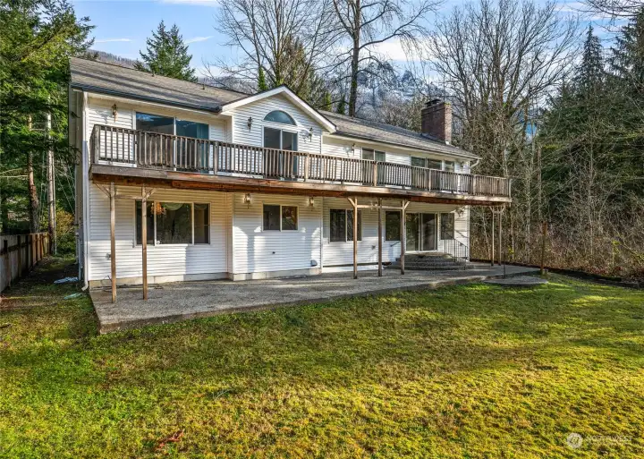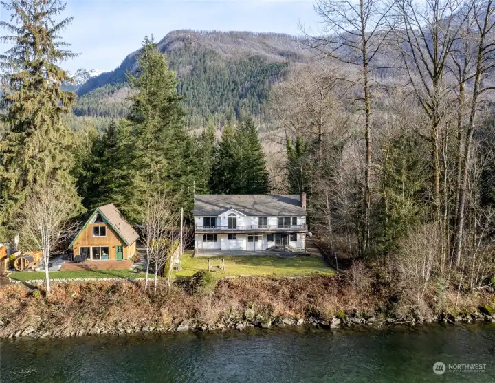 Welcome to the Colonial home on the Skykomish river. That comes with a lot across the street. This large home is ready for a new owner and a new makeover. Currently a 3 bedroom 3680 sq ft but if you finish the basement then it would be 5 bedrooms at around 5200 sq ft. 6-bedroom septic installed. There are also 2 office/den spaces in the house that may be used as a bedroom. Many possibilities area available for this house. Just added new roof Dec 24. Large generational house? Corporate retreat? Artist? Large Air B and B. Bed and Breakfast. Just 20 min from Stevens Pass. positioned for year-round outdoor fun like hiking, skiing, fishing, and kayaking... Swimming just feet from the back yard, in the summer. RV parking.