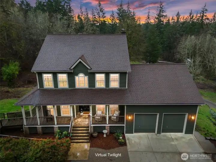 Just 4.9 miles from downtown Battle Ground and 2.1 miles from Battle Ground Lake, this peaceful 5-acre retreat offers space, privacy, and flexibility. Set on a quiet private road, it features two complete living spaces—ideal for multi-gen living, rental income, or guests. With 4 bedrooms (potential 5th), 2 offices, 2 kitchens, 2 laundry rooms, and formal dining, there’s room for everyone. Enjoy the wrap-around porch, decks, seasonal creek, fruit trees, and blueberries. An oversized garage with loft, 220V shop, RV carport, and utility-ready pad complete this versatile property—perfect as a private retreat, hobby farm, or income opportunity.