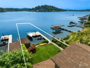 Desirable street-to-water lot with panoramic views and no bank waterfront on Lake Washington's Meydenbauer Bay. Enjoy gorgeous and expansive views of Mt. Rainier and the downtown Bellevue skyline. Idyllic setting inspires outdoor living and affords a front-row seat to fireworks displays and year-round activities on the lake. Rare boathouse at water’s edge. With endless possibilities of building your dream home, this unique property is a once in a lifetime opportunity. Highly rated Medina and Bellevue Schools. Easy access to freeways, Bellevue, and Seattle.