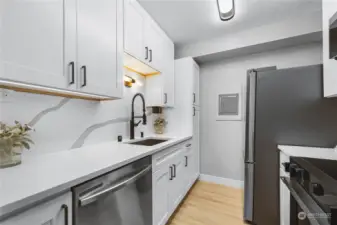 This beautifully remodeled Mid-Century condo is filled with natural light and offers stunning city views through expansive windows. The updated kitchen boasts sleek new countertops, shaker soft-close cabinets, and brand-new stainless steel appliances. Fresh interior paint, new light fixtures, and an updated bathroom enhance the modern feel. Enjoy fantastic amenities, including an outdoor pool, car wash station, and extra storage. Nestled in a well-maintained building with a prime location, this home has a WalkScore of 98—putting top dining, shopping, and entertainment just steps away.