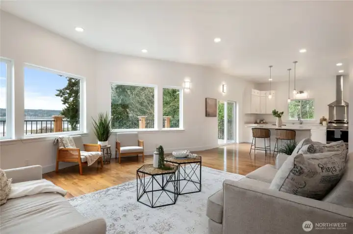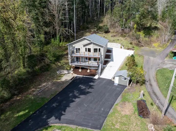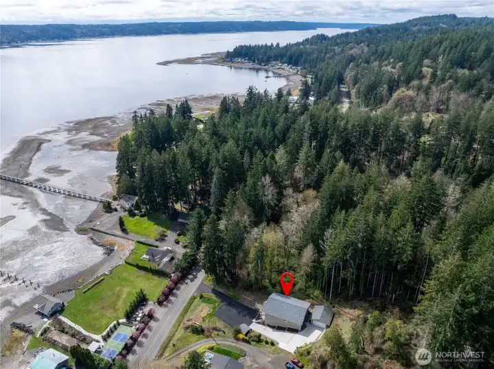 Welcome to your dream home on the Hood Canal! Imagine waking up to breathtaking water views everyday! Unique new construction view acreage w/large paved area to store your boat, RV & plenty of guest parking for entertaining. Less than a mile to the Public Boat Launch & Belfair State Park. Enjoy the perks of a waterfront lifestyle without the taxes. This relaxing retreat has a primary on the main with ensuite, walk-in closet & pantry; an open concept kitchen & living area boasts quartz countertops, hardwood floors, vaulted ceilings, 2 bedroom + bonus room & office w/lower level, an open rec/multi-purpose room & outside access. Close into Belfair proper, this oasis is a reasonable drive to PSNS, Tacoma & Olympia. Come live the good life here!
