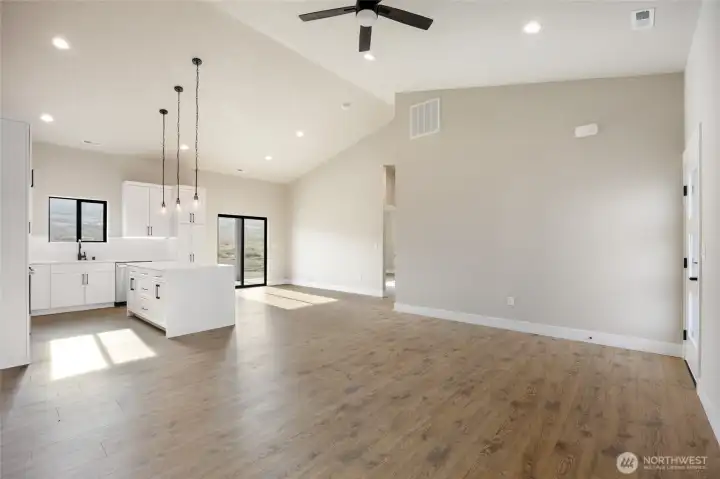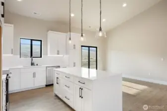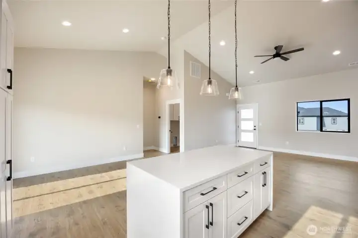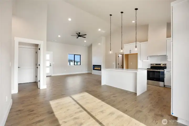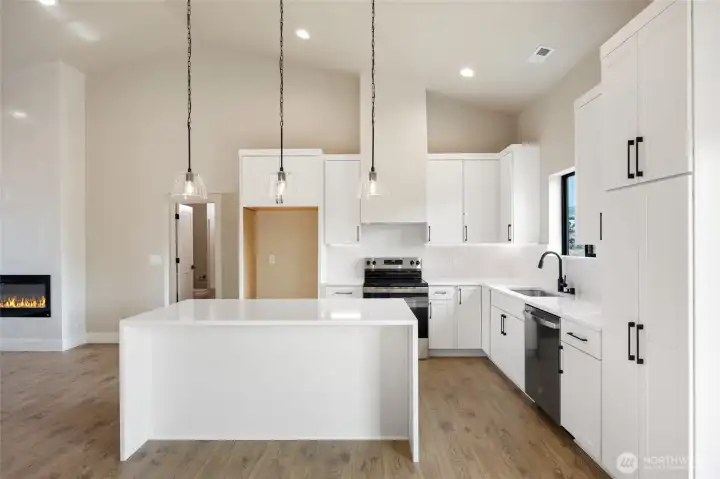 Welcome home to this 3-bedroom, 2-bath home in The Legacy Resort at Frenchman Hills, a sought-after community known for panoramic views and abundant outdoor recreation. This thoughtfully designed floor plan features a 3-car garage and a professionally landscaped front yard. Interior finishes include luxury vinyl plank flooring throughout. Upgrades throughout the home include stainless steel appliances, quartz windowsills, quartz countertops with a full backsplash, a striking waterfall kitchen island, electric fireplace, hexagon garage lighting, and a fully finished garage complete with a utility sink and quartz countertops. The attached primary bathroom showcases a beautiful fully tiled walk-in shower, adding a spa-like touch to the retreat.