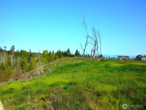 This property offers stunning views of the Straits of Juan deFuca and Victoria Island to the north, as well as the Olympic Mountains. Previously used as a goat dairy processing farm, it had past certifications including an organic goat dairy facility and WSDA food program certification. The property includes an existing dairy processing facility, barn, and fencing. Plans are available for a second barn attached to the north side of the facility. The site is prepared for a three-bath home, with sufficient power available to build both a home and an additional barn.