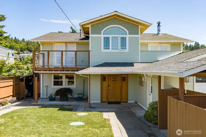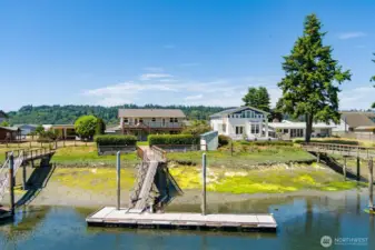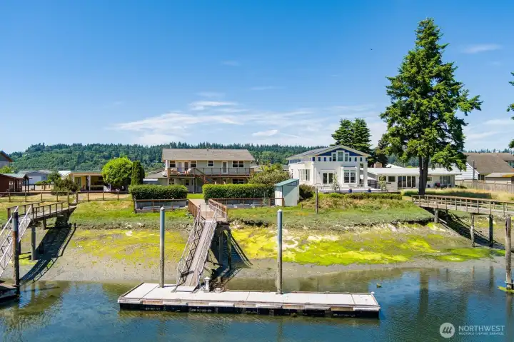 Embrace the ultimate waterfront lifestyle with this beautiful craftsman home, complete with a ~50 ft dock equipped with water and power, perfect for boating, fishing, and crabbing adventures. Thoughtfully designed for comfort & function, the home boasts Brazilian cherry wood floors, custom kitchen cabinetry, a 36-inch range with hood, and freshly updated interiors with new carpet, fixtures, & paint. The lower level offers a cozy propane fireplace, wet bar, & full bath, creating a welcoming retreat. Step outside to enjoy ironwood decks, a large patio, & fully irrigated landscaping w/raised garden beds. With an oversized two-stall garage, heated shop, whole-home generator, and dock, this home is a rare waterfront opportunity.