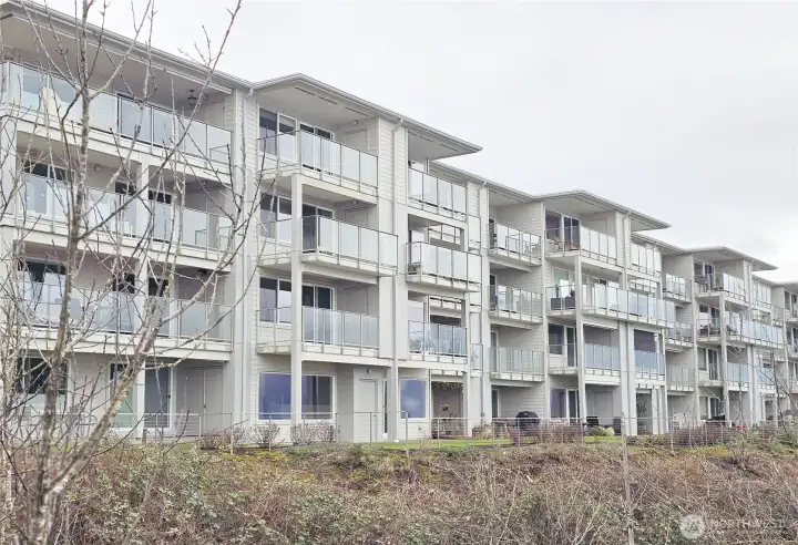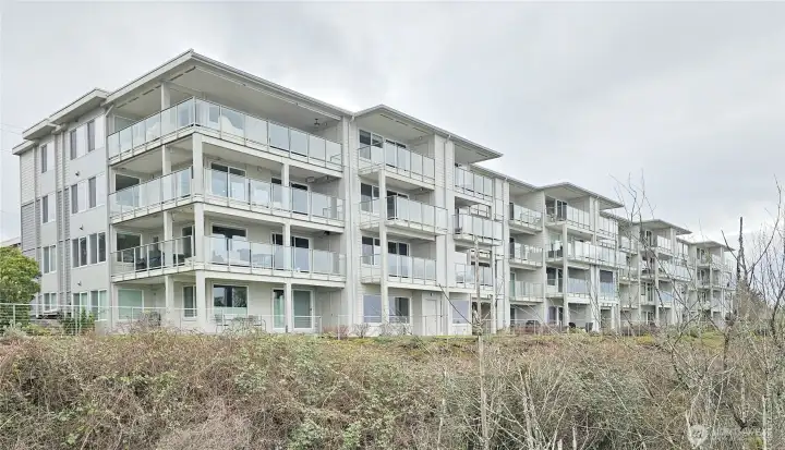 Water views on two levels. Desirable location within a short distance of the best of Fairhaven dining, interurban paths, shopping and more. Primary bedroom brings you every sunset. Expansive living spaces looking west through picture windows. Kitchen filled with storage, new countertops and stainless appliances. Separate dining room ready for entertainment . Rare- Two parking spaces are included. Can be used as a full time rental as well - transferable. Large utility room. Sep storage unit. Option to update to HVAC is available. Gateway to Alaska on the Alaskan Ferry. New roof, siding, windows, doors completed in past couple years.