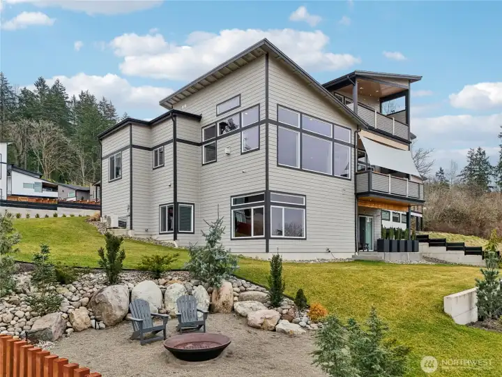Seller offering a 2-1 rate buydown on the best deal in the River Rock neighborhood. Seller upgraded the home beyond the new construction with SMART home features, sleek finishes, high-tech cabling and more. The top-floor suite boasts a private balcony with breathtaking views, private washer & dryer, & a spa-like retreat. Main level features an open-concept with a large chef’s kitchen- complete with an industrial sized fridge & walk-in pantry, & a spacious balcony with an outdoor fireplace. The lower level offers a rec room with wet bar, projector & huge screen, adjacent to a patio, creating seamless indoor-outdoor flow. Enjoy A/C, irrigation, 3-garage, electric gated entrance. Upgraded landscaped yard w/terraced levels, fence & fire pit.