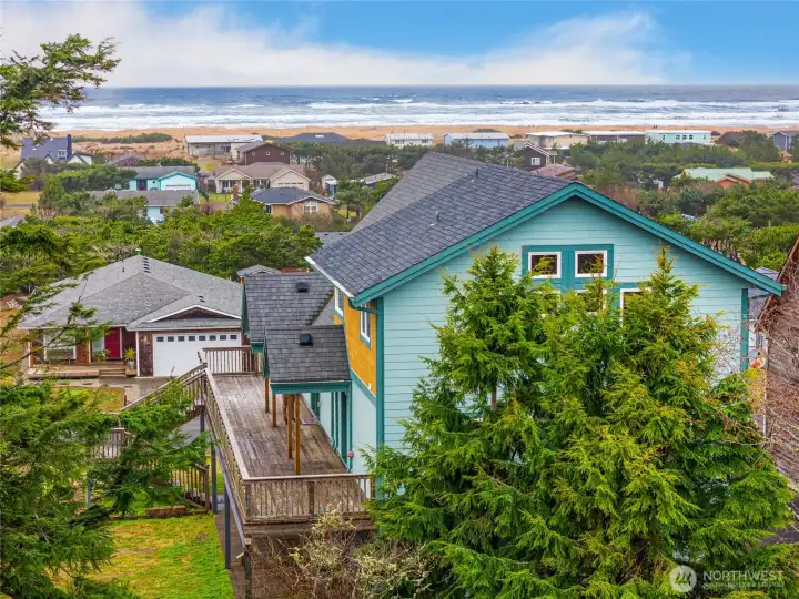 Price Adjustment! Enjoy OCEAN VIEWS across the ENTIRE front of this immaculate custom-built home! Soaring vaulted ceilings and a loft-style primary w/ensuite (heated bathroom floors!) make this home uniquely special. The 3rd BR/den/office/media room has surround sound (non-conforming- no closet, but estimate in hand). Built-in speakers inside & out. The kitchen's a dream w/ stainless steel appliances, granite countertops, & knotty alder cabinets, EZ-close drawers, pantry, & lazy-susan style corner cab. Convectair all digital heating system. Home is wired for security system & has upgraded HD9 structure. 4 Car Garage w/"shop" area, & 1/2 bath (generator stays). $10,000 Seller credit offered towards deck or closing costs/rate buy-down.
