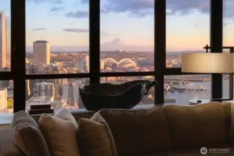 Offered for the first time, this bespoke residence is considered “One of One”. Offering jaw-dropping views & a masterful renovation by Seattle-based and internationally renowned interior designer Terry Hunziker. A brilliant collaboration between owner & designer created an arrestingly beautiful yet understated interior. Hunziker’s signature aesthetic of timeless design & highly detailed interiors is magnificently showcased in this iconic Seattle Penthouse. Custom window seats, 2 balconies, an extensive use of artisan & natural materials, 11’ ceilings and top-of-the-world views provide the perfect backdrop to this unforgettable home. Tax SF 2,890, window seating may increase SF to as much as 3,190.