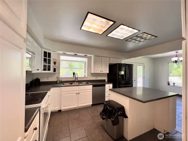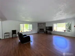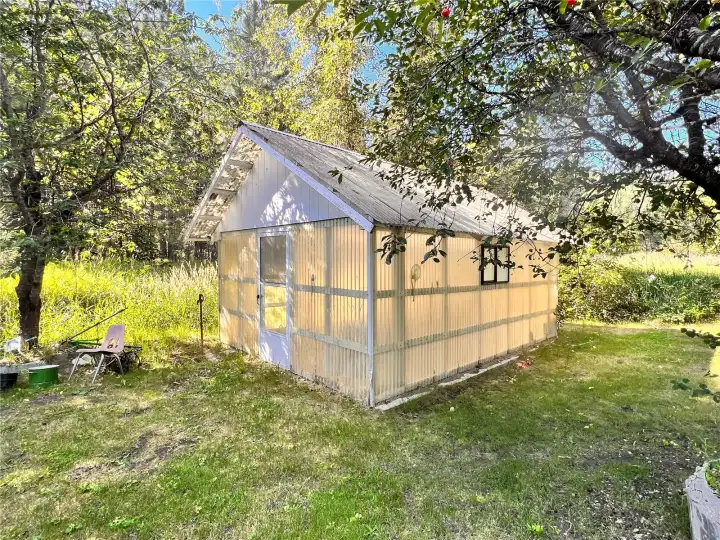 Immaculate, well kept home with a huge shop nestled back against the creek. This large two story home is well set up with a new, bright, open concept kitchen with French doors leading out to a huge deck overlooking the creek. Large family room has a propane fireplace, plenty of room & nice looking laminate flooring. Downstairs there is a huge rec room with a bar & wood stove. There are laundry hookups both upstairs & down. Attached 2 car garage as well as a huge, insulated 30’x40’ shop with 20’ lean to’s on either side & huge covered lean to area off the back. There’s no shortage of covered storage space. Asphalted circular driveway off of a state highway so….no dust!. Nice green house, lots of landscaping& room for a few animals.