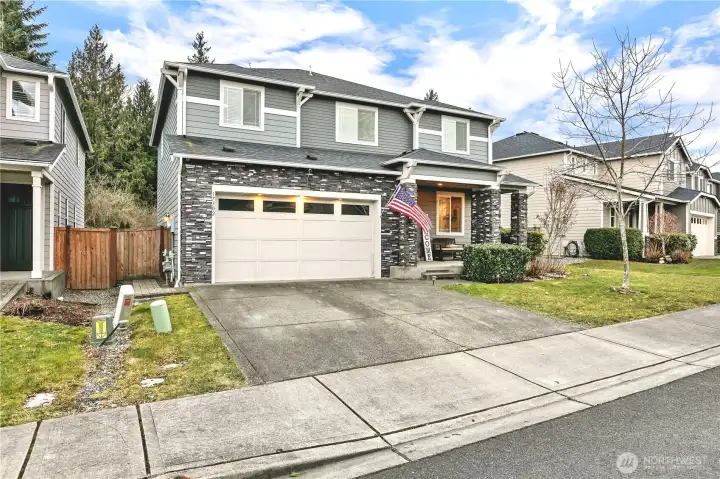 Welcome to this fantastic home in the gated Emerald Pointe Community in Sunrise. Situated on the edge of the community this homes backs up to green space offering privacy and peace. Brand New Carpet. The kitchen is a chefs dream with a gas cooktop, double ovens and amazing amounts of storage. The main floor living room spills out to the covered patio with a gas line for your bbq, and a brick fire pit. Double doors from the entry open to the dedicated office. Upstairs you'll find plenty of space for everyone with another living room, the primary bedroom and bathroom, 3 additional bedrooms with a bathroom and the laundry room. Enjoy the amenities of the sunrise community and the HOA maintains the front yard. Close to shopping and restaurants.
