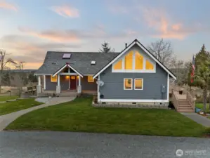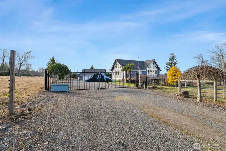 Breathtaking Mount Rainier & Olympic Views! This stunning custom home sits on 20 private acres in a gated community of high-end homes, offering the perfect blend of luxury and rural tranquility. Spanning 4,039 sq. ft., this meticulously designed residence features 3 bedrooms, 3 bathrooms, and a potential 4th bedroom. The lower level presents an opportunity for a MIL suite, adding to the home's versatility. Designed for both comfort and functionality, the property includes a 30’x36’ greenhouse, a 40’x30’ shop, and a spacious detached garage. A newly installed 40-year roof, a/c, automatic generator, and irrigation system provide peace of mind. Endless possibilities for customization, this is a rare opportunity to own an exceptional estate