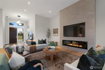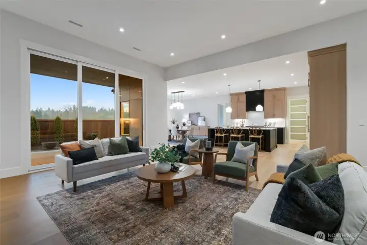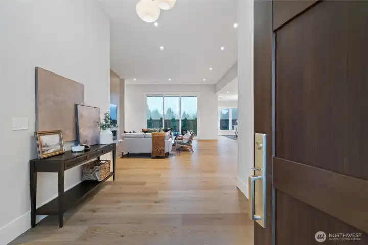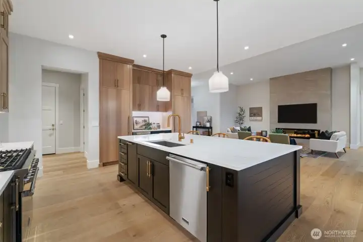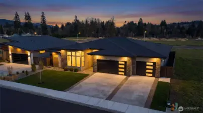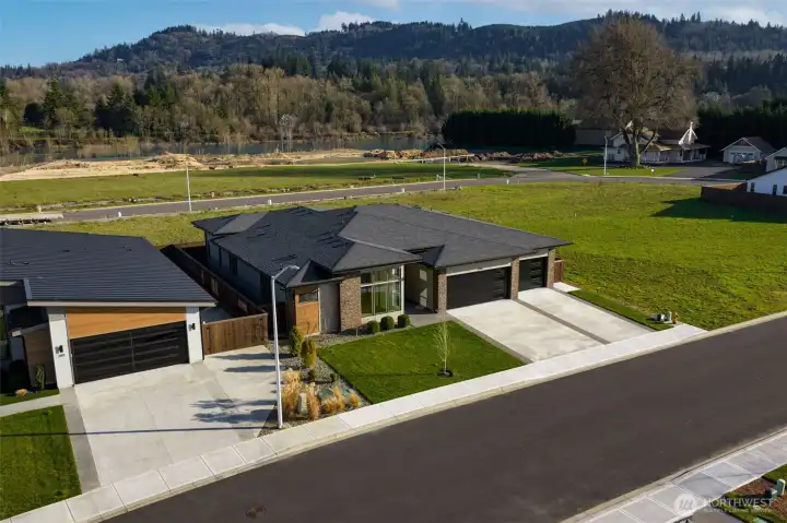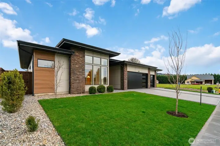 Experience refined modern living with luxury, efficiency, and thoughtful design throughout this beautifully appointed home. A heat pump water heater with hot water recirculation provides energy savings and near instant hot water for everyday comfort. Wide plank European white oak floors extend through the light filled great room, where floor to ceiling glass doors open to a covered patio and low maintenance yard with a quartz stone built in BBQ, creating seamless indoor outdoor living. The flexible layout offers two ensuite bedrooms positioned on opposite sides of the home, providing the rare benefit of dual primary suites for privacy and versatility. The sleek kitchen showcases panelized Fisher and Paykel refrigerator freezers, a natural gas cooktop, and modern Northwood cabinetry, while the included washer, dryer, and integrated refrigerator add exceptional move in ready value. Smart features such as automated shades and integrated lighting controls elevate daily living with convenience and ambiance. Located in Riverwalk at Lewis River, the community offers river access for kayaking, picnicking, and enjoying the beauty of the Pacific Northwest.