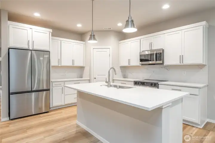 MTT Homes Newest Offering. Fantastic lots that back to natural areas. Newly completed 1710 sq ft Rambler has spacious Great Room featuring a large Island Kitchen with, stainless appliances, Quartz Counter tops, with Tile backsplash, walk-in pantry. Dining area leads to outdoor, private covered patio to enjoy the sunset over Drayton Harbor. Large Primary bedroom and bath with Quartz counters and walk-in shower and large closet. The two additional bedrooms are separate from Primary providing privacy. Covered front porch, whole home forced air with A/C. Close to downtown Blaine and Canada for shopping, dining, golf, boating and all recreational activities. Buyers choose colors throughout at Design Center. Special Finance options
