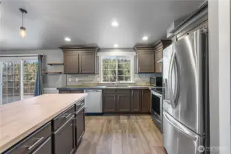 Welcome to this beautiful, private country home on 9+ acres in Centralia! The home sits up on the hill and offers fantastic views of the valley below from the large back deck which is perfect for entertaining. Inside you'll find many custom finishes including concrete counter tops, luxury vinyl plank flooring throughout, kitchen island, lovely tile backsplash and on site water treatment system. Below the house you'll find a wood stove heated 24' x 36' shop with lean-to for your firewood and a large pump house. Partially fenced with gated entry, it would be a great property to raise your own livestock or just to enjoy the peace and serenity. Short 10 min drive to town.