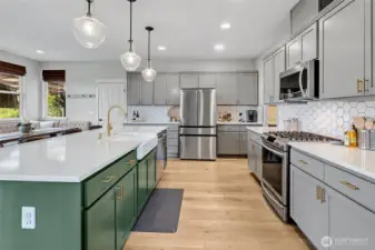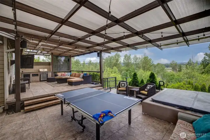 Gorgeous custom home in the Panorama West Community of Bonney Lake. This quality-built home offers 3,332 sq ft of living space - 5 bedrooms, 2.5 bathrooms and a main floor office. Spacious floor plan boasts hardwood floors, vaulted ceilings, gas fireplace, ample storage, and plenty of natural light. The island kitchen features quartz countertops, high end appliances and a butler’s pantry with a wine fridge. Primary bedroom with an ensuite bathroom and walk-in closet. Fully fenced private lot with mature landscaping, heated covered patio and a built-in outdoor kitchen that is perfect for year-round entertaining. Plus, there is a 4-car tandem garage, hot tub, shed, wired for a generator and endless views. This home is a must see!