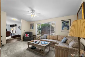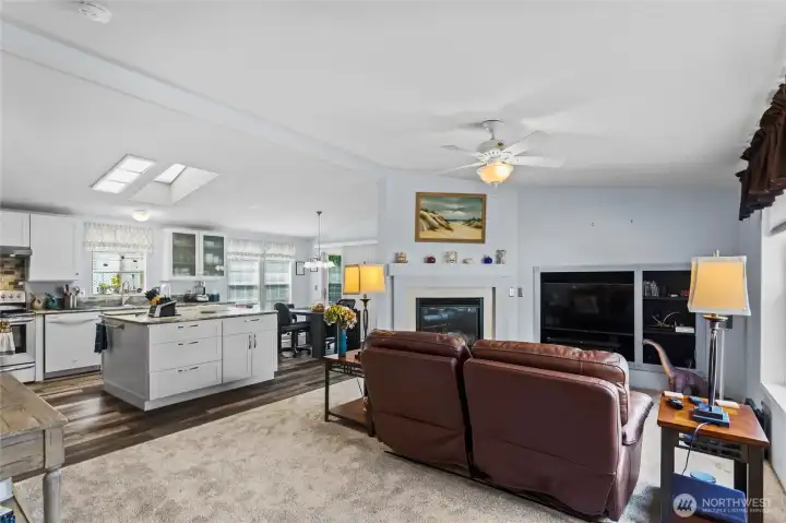 Welcome to the best in 55+ living! Nestled in a peaceful, well-maintained community, this 3-bed/2-bath home boasts a spacious primary suite w/ a cozy sitting room & a luxurious double-doored primary bath featuring a garden tub and ample storage. Enjoy the warmth of a gas fireplace from the open concept kitchen & living room, complemented by skylights, ceiling fans, a heat pump, & AC for year-round comfort. Step out onto your private patio to savor your morning coffee overlooking a serene fountain. This unique setting offers a peaceful country ambiance w/ nearby river trails, yet convenience to town. Recent upgrades include a new furnace, refreshed kitchen, & NEW CARPET, making this home a standout in charm and functionality for 55+ living.