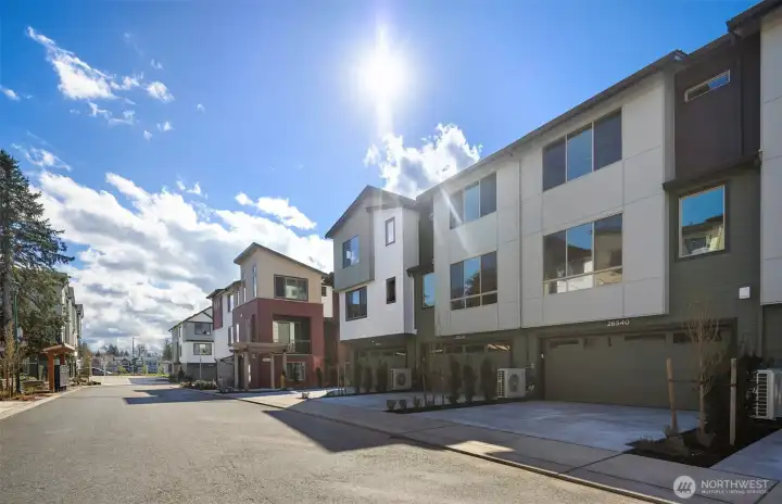 Welcome to 65 Degrees! This 4 Bed, 3.5 Bath, 3-story townhome with sleek architecture, luxury finishes & dependable builder warranties. Main floor features expansive kitchen, open living & dining area. Upper floor showcases vaulted owner’s suite w/ walk-in closet, plus 2 more bedrooms. Lower level hosts ideal front entry overlooking community park, convenient access to 2-Car garage, plus driveway parking! This particular home is nearing completion, fully upgraded with quartz countertops, craftsman cabinetry, & luxury vinyl plank flooring. Quality craftsmanship, smart layout choices, and energy-efficient construction including heat pump, make this home both stylish and practical. Located in the heart of Duvall, 65 Degrees offers a wonderful setting with convenient access to local parks, trails, schools, and charming downtown amenities. Easily walk downtown to Main Street, Dining, Shops, Public Library, coffee shops & more! Riverview SD, Bus line nearby. Come tour today and ask about our amazing financing incentives—this is a rare opportunity to own in one of Duvall's most in-demand communities. Model Homes open Thursday-Monday 10-5pm.