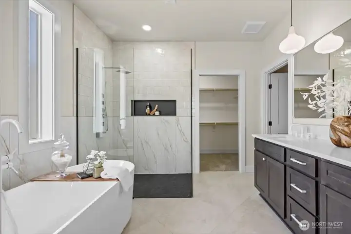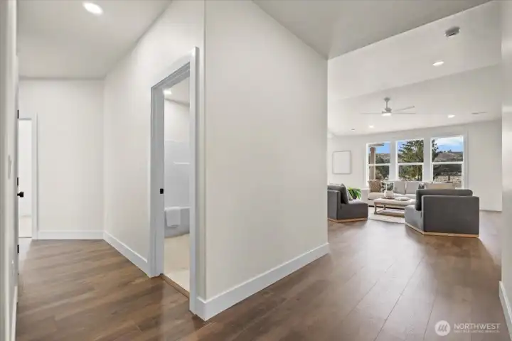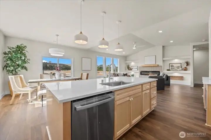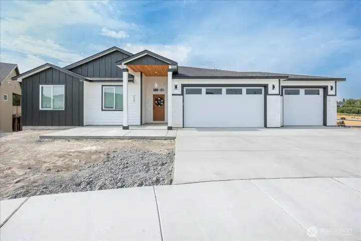 2096 sqft 1 Story with 3 Car Garage! Love the open floor plan layout with vaulted ceilings - great rm, kitchen and dining space with slider door to your covered deck. Kitchen has 4x8 island, farm sink, vent hood and pantry for all your goods. Love spacious primary ste, primary bathroom with dual sinks, water closet ,walk-in shower, free standing tub and lg walk-in closet. 3 bdrms sharing spacious bathroom with dual vanities and tub shower. Then you have great covered deck for out door living space to enjoy.