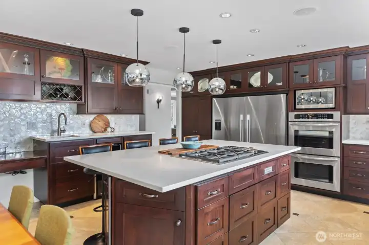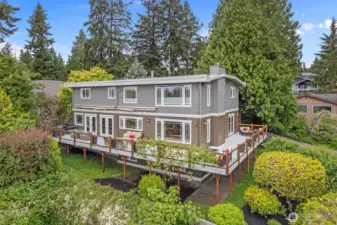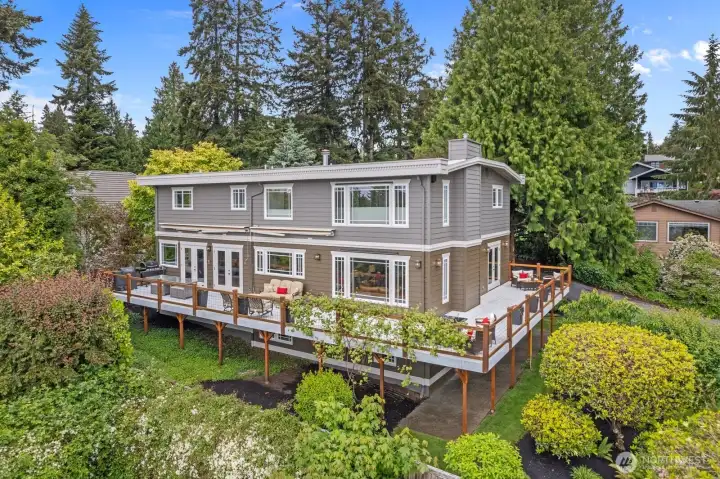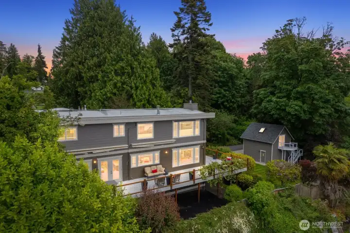 Sound & mountain view home on a large private lot in desirable Woodway. Exquisite craftsmanship w/amazing attention to detail. To-the-studs remodel in 1995; beautifully re-updated 2023! Generous kitchen/family room & spacious living /dining areas each step out to a huge wrap-around deck perfect for entertaining. Stunning primary w/updated ensuite w/soaking tub, heated floors & fireplace. Lower level w/separate entrance offers easy multi-generational/MIL potential. Lower spaces include rec-room, 1+ bedroom/s, 3/4 bath & large flex area. Detached 2nd garage w/upper-level studio, office or hobby room. Be sure to check out attached floorplans! Addl parking w/space for an RV! Looking for beauty, quality, comfort & space? You'll find it all here!