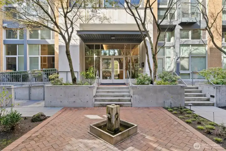 ** Seller financing ** Welcome to the BRIX condos! This quiet ground-floor loft unit features its own entry from serene court yard along with abundant natural light. Soaring 15' ceilings, art-gallery walls, and expansive windows create a bright, airy feel. The chef’s kitchen boasts a gas range, stainless steel appliances, and a rolling prep island. Upstairs, the primary suite includes a walk-in closet and private bath. Step outside to enjoy coffee in the lush courtyard or entertain on the expansive roof deck with city and partial water views. Includes oversized garage parking and storage. Steps from top restaurants, nightlife, shops, Volunteer Park, light rail, and more—all within a very secure building. Don’t miss this gem!