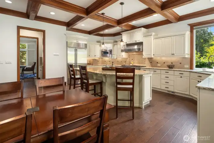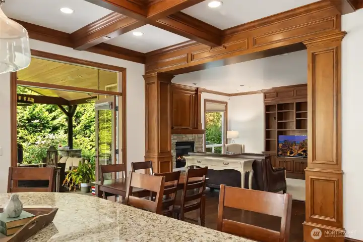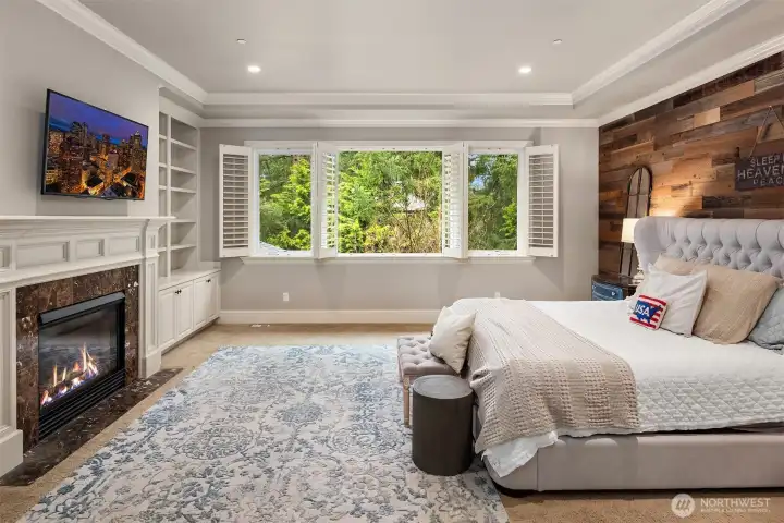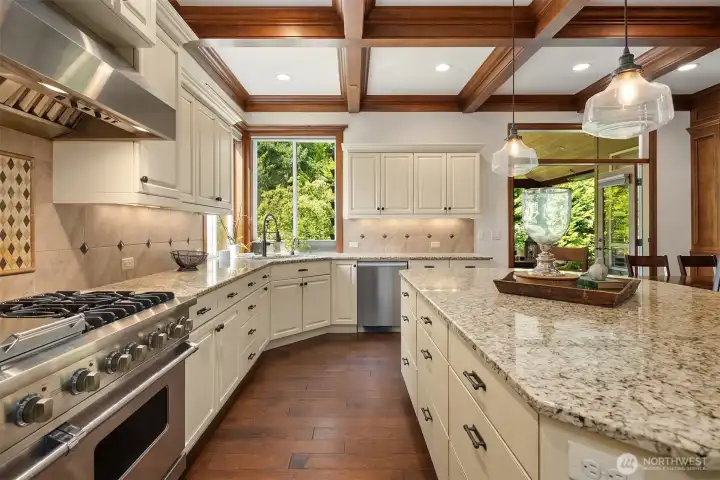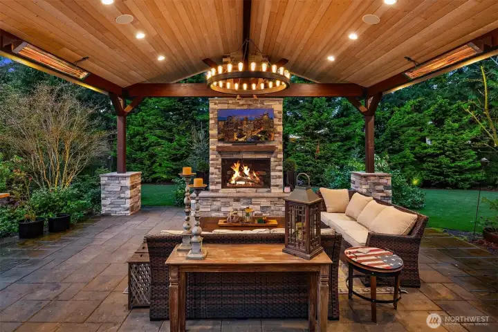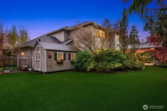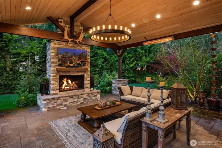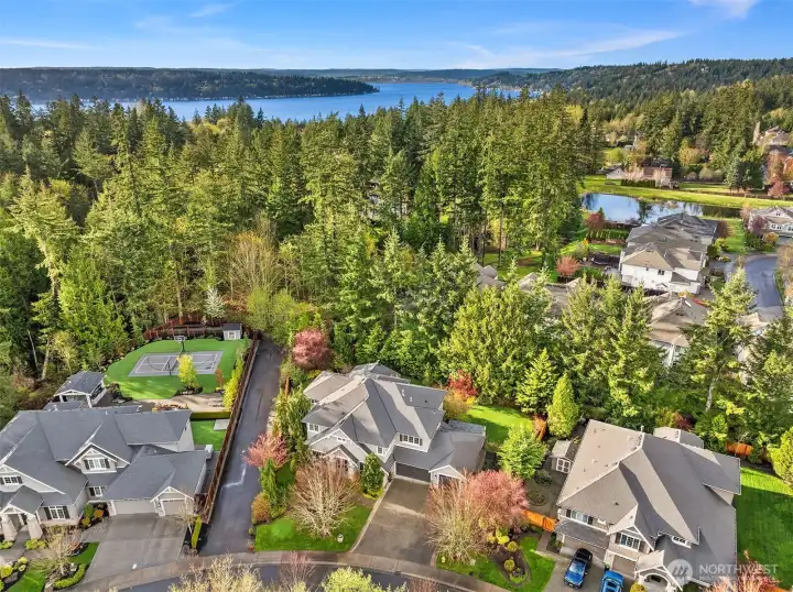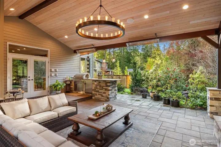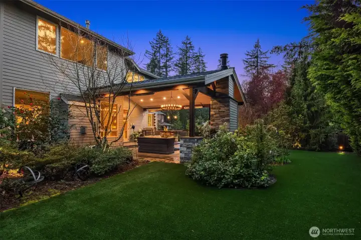 Inside, enjoy rich hardwoods, custom alder cabinetry, a slab granite kitchen w/a Viking range, and coffered ceilings. Updated w/fresh paint including kitchen cabinetry for a clean & brighter look! The outdoor space is designed for year-round enjoyment w/a covered patio, built-in heaters, & landscape lighting. The private backyard features synthetic turf, added trees, & a large storage shed. All of this situated on a private, 1/3rd acre lot. Upgrades include Clopay garage doors, epoxy floors, a Level 2 EV charger, slat walls, shelving & a dedicated electrical panel wired for a generator. Located in a quiet, dead-end neighborhood with just 38 homes, enjoy a close-knit community with park parties & easy access to top Sammamish amenities.