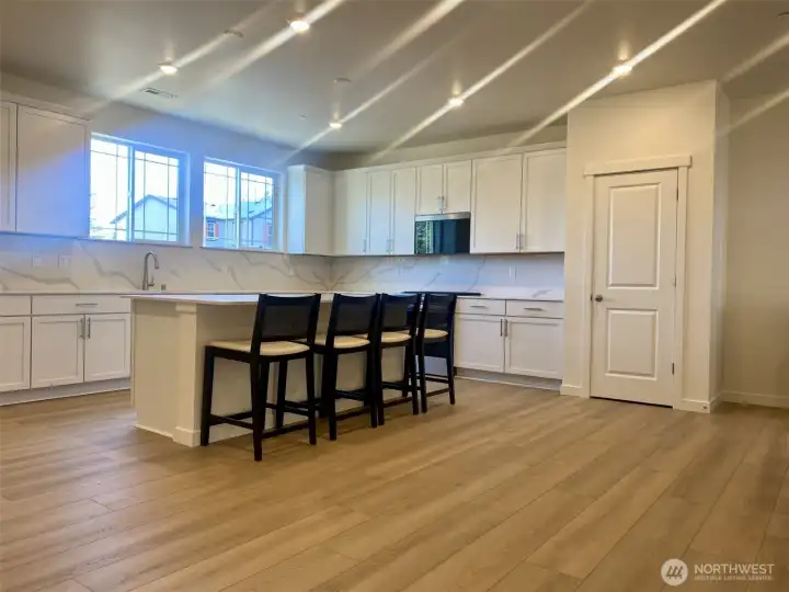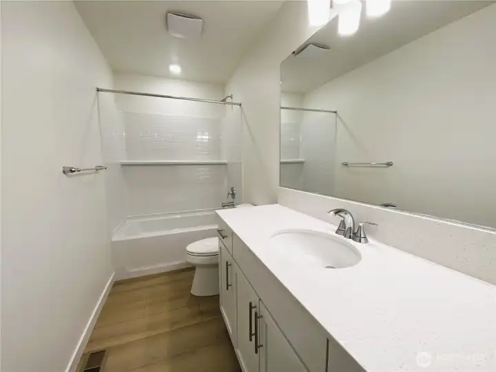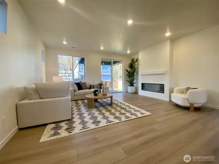 Gas cooking here in Mill Bridge with a move in ready home. Experience a rare three-story design that truly lives like a two-story. A thoughtful layout offering an expansive great room with a sleek linear fireplace, durable luxury vinyl plank flooring, and seamless indoor–outdoor flow to the fully fenced yard. A convenient main-floor bedroom with walk-in shower is perfect for guests or multigenerational living. The modern kitchen features 42-inch upper cabinets, stainless steel appliances, quartz countertops, a pantry, and a full-height backsplash. Primary suite provides a relaxing retreat with a walk-in closet.