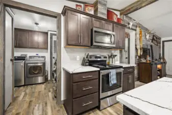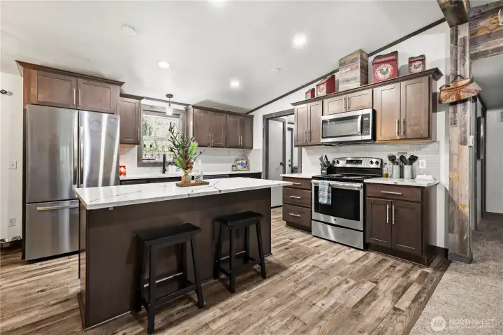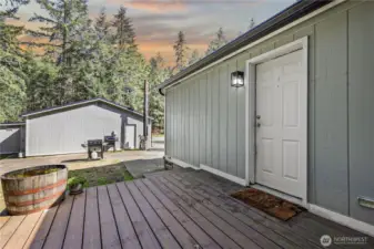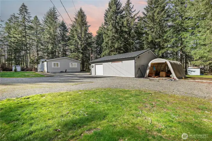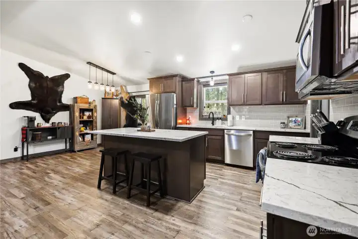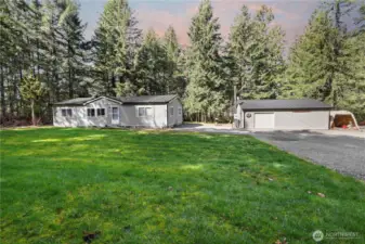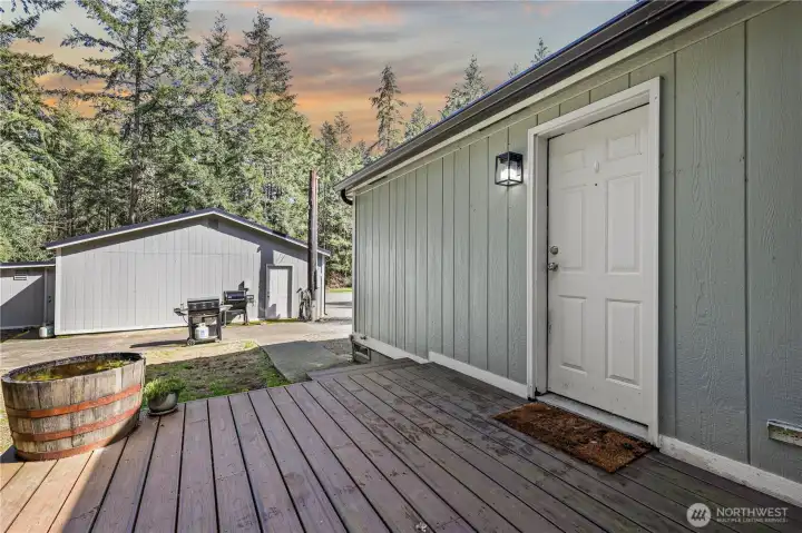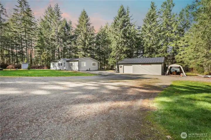 Tucked at the end of a quiet dead-end road with no HOA, this private retreat sits on shy 2 lush acres. Inside, enjoy 3 beds, 2 full baths, an updated kitchen with granite counters, tile backsplash, LVP flooring, and newer cabinets. Rustic wood accents add warmth, along with wood feature walls. Both bathrooms have new vanities, and the laundry/mud room leads to a low-maintenance Trex deck. Outside features include RV parking, a firepit, tons of storage, and a massive finished outbuilding with wood walls and ceiling—ideal for a gym, guest suite, or studio!