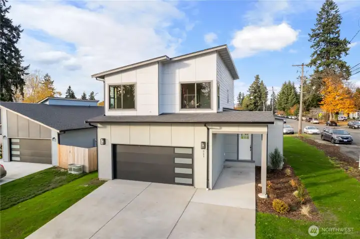 Introducing a Brand New, Quality-Built Home in Phoebe's Meadow!! Experience modern luxury designed for everyday comfort, featuring timeless black &white finishes throughout for a sleek, sophisticated look. Every detail has been carefully curated, including designer lighting adding a touch of elegance & warmth to each room. All LVP flooring & quartz countertops. Seamless floorpan w/ vaulted great room & fireplace leading to a chef-inspired kitchen w/ entertaining island & walk-in pantry. Upstairs primary suite offers soaring ceilings, walk-in closet & dual sink vanities. Extra storage area & AC. Step outside to a covered patio, perfect for gatherings. Quiet street close access to schools, I-5, Joint Base Lewis-McChord & Sounder commuter.
