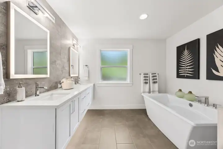 50K BUYER BONUS on our popular 3023 plan! The main floor offers a spacious, light-filled great room with fireplace, and a chef's kitchen with quartz counters, Huntwood soft close cabs, beverage fridge, gas range/oven, wall mounted oven/micro, pantry, & full height tile b/s. JennAir Rise appliances, w/ refrigerator included. Large main-level bedroom/office & 3/4 bath. 2nd floor primary BR and ensuite with heated floors, floating vanity, backlit mirrors, huge shower, soaking tub, & custom closet. Three more bedrooms, full bath, large bonus rm, & utility rm. 2 car garage, full fence, EV charger, & AC/heat pump. Private, fully landscaped, irrigated, & low maintenance yard. Northshore SD & easy access to Seattle & Eastside. Move in ready!