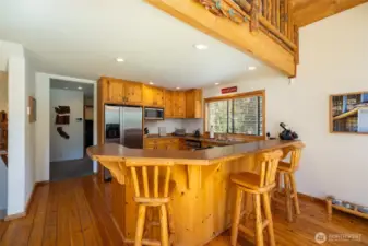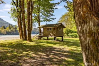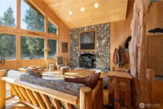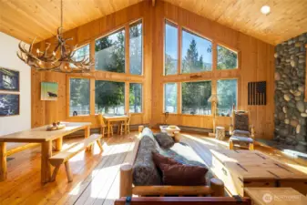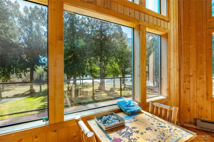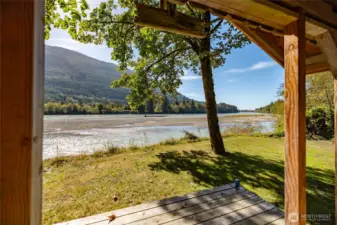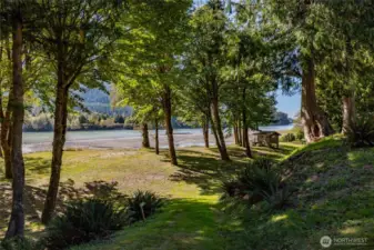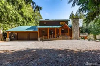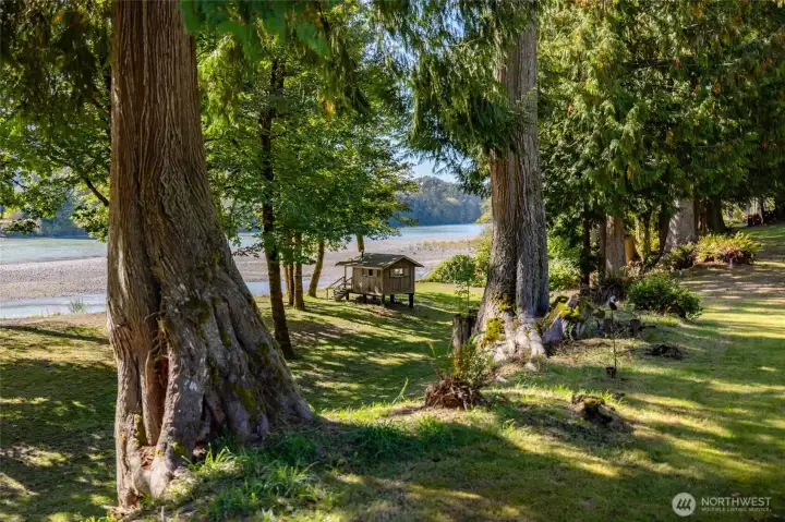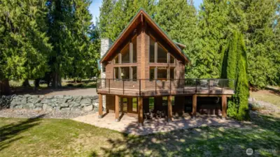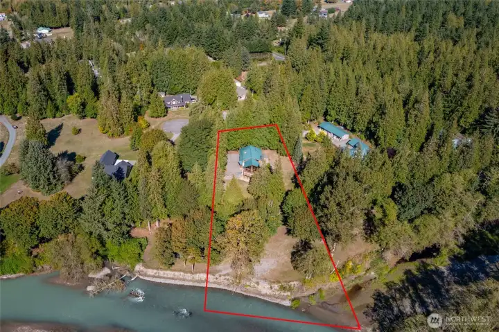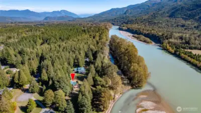 Rustic, log-accented custom residence on just shy of 2 acres of prime riverfront. Set in an upscale enclave w/other high-end homes, this dramatic 4000+SF home rests on park-like grounds w mature trees, private setting, grassy terraced land w/lots of room to play & relax. The vaulted great room, open kitchen w/eating bar, huge view deck, upper level primary suite w/views & a cozy finished basement are warm & inviting. Log posts, steps & railings, T&G ceiling, hardwood flooring, river rock fireplaces, fly-tying table, wine cellar, hot tub & more. Fish from your own property, check out the 'fishing cabin' on the lower level by the river. Make this amazing home your own & enjoy eagle-watching, sunsets & the ever-changing beautiful Skagit River.