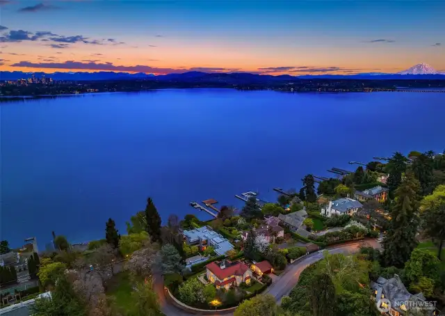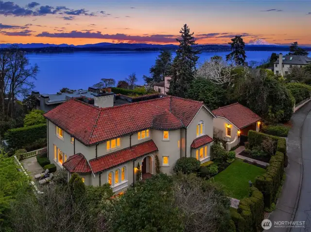 Luxurious Mediterranean Villa in the heart of Denny Blaine radiating charm revitalized in 2006. Private outdoor gardens & patios reminiscent of a European countryside estate- Breathtaking Lake Washington views. Expansive open entry, Mediterranean design. Classic Clive Christian kitchen w/ marble counters, high-end SS appliances (Bosch, Wolf, Sub-Zero). Upstairs the expansive primary suite is the highlight w/ panoramic Lake WA and Bellevue skyline views. The spa-like bath features heated marble floors, soaking tub, dual marble vanity & marble shower. Downstairs discover the dedicated media room w/ full wet bar & second primary suite! Outside roam through rose gardens & sprawling lawns onto the European-style flagstone patio. Ideal location.