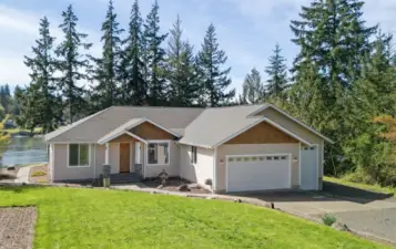 Elegant Custom Home with 124’ of Saltwater Frontage on Hammersley Inlet. This thoughtfully designed single-story 3-bedroom, 2-bath custom home offers comfort, style, and versatility to suit your lifestyle. Enjoy breathtaking, ever-changing south-facing marine views from the full-length composite deck. Inside, you’ll find 9-foot ceilings, engineered hardwood floors, and high-end finishes throughout including premium cabinetry, stainless steel appliances, custom interior doors and trim. The home is equipped with a heat pump, double garage, and additional 52' x 14' garage ideal for RV or extra vehicle storage. The beautifully landscaped grounds feature a stamped concrete walkways, along with a private stairway leading down to the gravel beach.