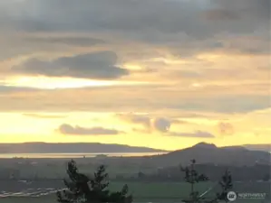 Dramatic Views, Sensational & Staged. Sunsets & lots of Light can be your new daily. It’s a grand 2-level vaulted & captivating brand new home overlooking the amazing Skagit Valley. Main level owner’s suite, office/4th BR, & laundry rooms make for easy 1-level living. Enjoy all the pizzazz of a new construction home that’s 5 min’s off 1-5. Nearby Mt Vernon, Conway, & Burlington has it all. Full length decks sprawl over 1,000 square feet over two levels with covered Crow’s Nest type nook to soak it all in. Walls of windows, mile-high ceilings, a trophy garage worthy of a super car, panoramic views of Skagit Valley flats, San Juan & Whidbey Islands, Skagit Bay, the snow capped Olympic Mountains & to the moon. Serenity on 1 acre. An ideal floorplan for anyone wanting multigenerational living with lower backyard access to lower levels of home with potential parking pad. Lower level, with its capacity to be self sufficient, could be for care givers, guests, or even Airbnb/VRBO with private living/access. Upper area/main floor has no steps at all through front door access & level throughout main level with no threshold bumps. Crawl space is HUGE & could be upgraded to dozens of uses such as: Sauna & Hot tub room, changing room for outside patio Hot Tub, Golf Simulator, Wine Cellar, Craft/Pottery/Kiln Room, Storage, Hobby-Train or Race Track, Archery, Game Room. Literally storage combo with any of the above. Land shape is 1 acre rectangle down the hill into trees.