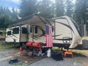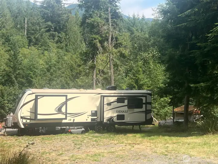 Tranquil mountain ambiance surrounds only available Greenwater parcel w/WATER connection. Live your dreams! Build a vacation cabin or place to call home on .28 acres. Cleared w/power in street & conducive soils for septic system design. Set back on elevated bank above pristine River. Peaceful sounds of nature will lull you to sleep. Short walk to village to shops & services. Community beach & swimming hole stones throw away. Built a base camp for adventures and recreation. Year-round gateway for outdoor sports & fun. Minutes to Crystal Mountain & prime summer scenic route to majestic Mt Rainier Nat'l Park. BONUS - Beautiful 34' Denali Travel Trailer w/3 pull outs included with a full price offer! Occupy comfortably while you plan & build.